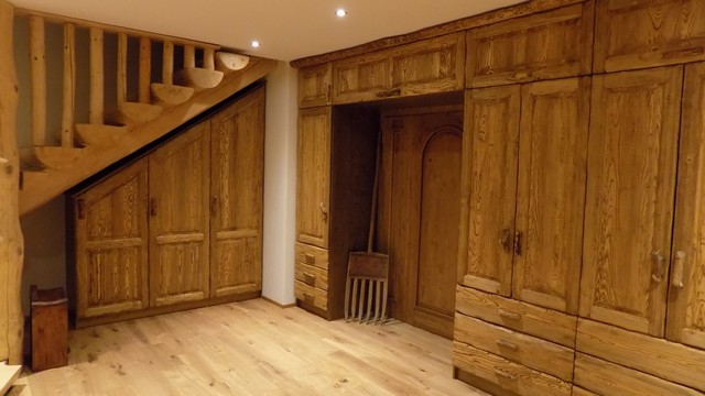 - Používáme velmi kvalitní lamino, masiv nebo kombinaci obou materiálů. Nabídneme vám různé povrchové úpravy – patinování, voskování, olejování apod.